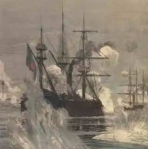 Barcos franceses durante el incidente de Paknam, 13 de julio de 1893.