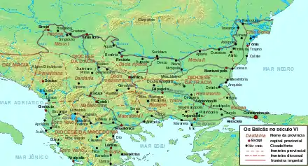 Focas mantuvo la seguridad en los Balcanes durante su reinado (del 602 al 610), pese a que retiró algunas tropas en el 605 para emplearlas contra los sasánidas. No hay datos arqueológicos que avalen ninguna incursión ávara o eslava en estos años.[26][27] Aunque la ausencia de actividad bizantina animaba a los ávaros,[26] no atacaron territorio imperial hasta aproximadamente el 615, cuando el emperador Heraclio (610-641) retiró los soldados de los Balcanes para emplearlos en Asia, donde intentaba frenar el avance persa.[7]