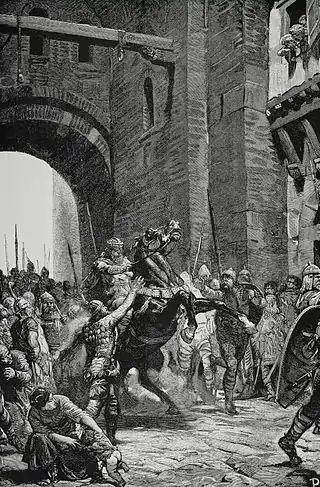 ![]() Representación de la entrada de Alboino en Ticinum, por Charles F. Horne, en The story of the greatest nations, from the dawn of history to the twentieth century, 1900. | ||||