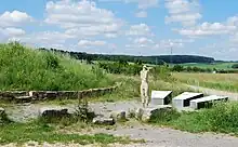 El guerrero lleva un sombrero puntiagudo, posiblemente figurando los realizados de corteza de abedul, similar al descubierto en el enterramiento de Hochdorf, una torques y un cinturón con un típico puñal de la Cultura de Hallstatt. Todos estos símbolos indican que se trata de un personaje de estatus elevado.