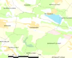 - Ubicación de Guewenheim y de las comunas limítrofes en el mapa de Francia (enlace roto disponible en Internet Archive; véase el historial, la primera versión y la última).