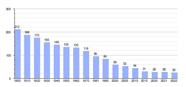 Según los últimos datos recogidos del año 2022, la parroquia contaba con una población de 25 habitantes (10 hombres y 15 mujeres) y sigue la tendencia de la mayoría de las parroquias asturianas de esta zona con un descenso progresivo de población que se manifiesta desde hace décadas como se ilustra en la siguiente gráfica que muestra la evolución demográfica desde el año 1900.