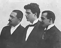 ![]() Retrato de Menasci (derecha), con John Targioni-Tozzetti y Pietro Mascagni | ||