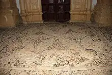 Suelo de guijarros en la Iglesia de Santiago en Bárcena de Campos (Palencia, Castilla y León).