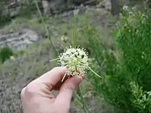 Es una hierba perennifolia, con cepa gruesa y denso collar de restos fibrosos foliares –de color pardo–. Tiene tallos de 50-130 cm de altura, sólidos, estriados, con nudos engrosados, ramificados en la mitad superior. Hojas basales hasta de 50 cm, de contorno triangular, glaucas, muy pelosas, con divisiones de último orden 1-3(7), lobulado- dentadas, mucronadas, vainas foliares grandes, con limbo muy reducido excepto en las hojas inferiores. La inflorescencia en umbela principal recia, con (6)7-13(23) radios de 4-7(13) cm, hirsutos –con pelos desiguales–, que acaban por depilarse. Brácteas numerosas, lanceolado-alesnadas, ciliadas, ± reflejas. Bractéolas lineares, que superan claramente la longitud de los radios. Pétalos oval-lanceolados, con ápice obtuso, incurvado, y cara externa lanosa. Cáliz con dientes de 0,6-1 mm, estrechos, agudos. Ovario y fruto joven tomentosos; estilos 2-3,5 mm, curvados. Frutos (6)8-10(12) mm, elípticos; mericarpos con las alas de 2-3(4) mm –las dorsales tan anchas como las laterales o más estrechas–, de un castaño claro, glabras, con las costillas primarias que resaltan por su margen engrosado y densamente mamiloso-peloso.[1]