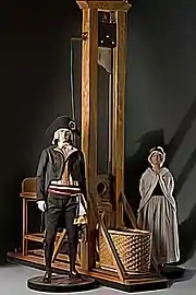 El primer ajusticiado de esta forma fue un bandido de caminos condenado por robo a mano armada llamado Nicolas-Jacques Pelletier, el 25 de abril de 1792.[5] La última ejecución efectuada en Francia con este método tuvo lugar el 10 de septiembre de 1977; el ajusticiado se llamaba Hamida Djandoubi y era un inmigrante tunecino que había asesinado a su exnovia.