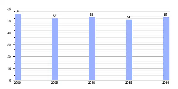 | Gráfica de evolución demográfica de Guimarey entre 2000 y 2019 |