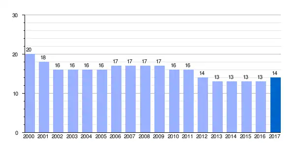 | Gráfica de evolución demográfica de Guinea[1] entre 2000 y 2017 |