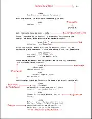 Un guion está conformado por 7 elementos. Cada uno de estos se escribe de una manera particular, y su forma encierra información relevante para los miembros del equipo de producción.
