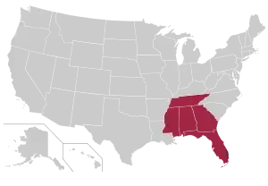 | Universidad Estatal de Jacksonville | Jacksonville, Alabama | 1883 | Gamecocks | 1970 | 1993 | ASUN (NCAA D-I) (C-USA en 2023) |
