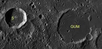 ![]() Imagen de la misión Lunar Orbiter 4, mostrando los 2/3 más al oeste de Gum | ||