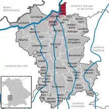 Está ubicado al oeste del estado, en la región de Suabia, a poca distancia de la frontera con el estado de Baden-Wurtemberg y al sur del río Danubio.