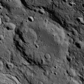Se trata de un cráter desgastado y erosionado con la forma del borde exterior un tanto distorsionada debido a impactos cercanos. Varios cráteres pequeños aparecen a lo largo del brocal. El suelo interior está marcado por sucesivos impactos, en particular sobre la formación erosionada que ocupa la porción occidental del lado norte.