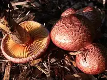 Píleo convexo, con superficie escamosa, de 3-6 cm de diámetro, de color rojo púrpura o moreno rojizo, margen al principio enrollado y fibroso, sabor amargo, láminas adnadas con ligera decurrencia, moreno amarillentas y ferruginosas en la etapa adulta, estípite de 3-6 cm por 10 mm de diámetro, ligeramente ensanchado en la base, fibriloso a escamoso, con coloro con el píleo, velo fibriloso manchado de color ferruginoso por la esporada. Anillo súpero, ferruginoso manchado por la esporada. Esporas elípticas, morenas, de 4.4-7.7 X 3.3-5.5 µm.[1][3][2]