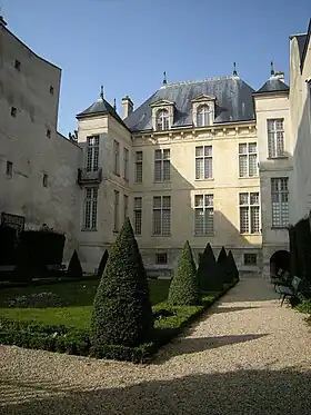 Su arquitecto adoptó un plan regular: los edificios rodean un patio rectangular. Básicamente, el edificio principal se encuentra entre el patio y el jardín. ; dos alas lo conectan con el edificio de la calle ; el sur probablemente albergaba cobertizos y cuadras, mientras que una sencilla galería ocupaba el ala norte. Del lado del patio, así como del lado del jardín, se proyectan dos pequeños pabellones laterales. La estructura del edificio principal es característica de los hoteles del Marais en el siglo XVI. : dos plantas de sótanos - una de ellas en semisótano reservada para las cocinas y la sala común - sobre las que se elevan dos plantas de la misma altura, una en planta baja alta reservada para los apartamentos de recepción, la otra planta cuadrada rematada con un techo alto, uno de los más hermosos que aún existen.[4]