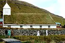 El edificio principal del pueblo es la iglesia, construida en estilo tradicional feroés. Hay algunas casas de arquitectura tradicional elaboradas de piedra o madera con techo vegetal; una de ellas es el museo de sitio de Heimi á Garði, perteneciente al Museo Nacional de las Islas Feroe.