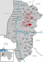Se encuentra ubicado a poca distancia al este de la frontera con Países Bajos y al norte de la del estado de Renania del Norte-Westfalia.