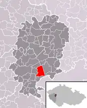Se encuentra ubicada al noreste de la región, en la cuenca hidrográfica del río Berounka —un afluente izquierdo del río Moldava que, a su vez, lo es del Elba—, y cerca de la frontera con la región de Bohemia Central.[1]