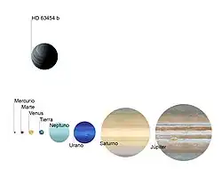 ![]() Tamaño de HD 63454 b en comparación con los planetas del Sistema Solar. | ||