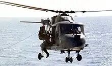 Los helicópteros Lynx de la Marina Real Británica trabajaron en combinación con los Seahawks de la Marina de los Estados Unidos durante la Guerra del Golfo. Los helicópteros estadounidenses carecían de un misil antibuque efectivo, pero tenían mejores capacidades de vigilancia que los Lynx británicos. Podían localizar unidades enemigas para que a continuación las aeronaves británicas las atacaran con misiles Sea Skua.[37] En total, los Lynx realizaron aproximadamente 600 salidas durante la Guerra del Golfo, mientras que sus tripulaciones realizaron tres veces más horas de vuelo que lo habitual.[38]