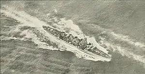 ![]() Vista aérea del HMS Royalist durante la Primera Guerra Mundial. | ||