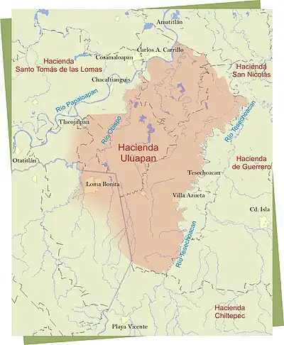 El Mayorazgo se conformó con los sitios que componían las haciendas de Uluapa, San Cristóbal y Cacahuatepec.