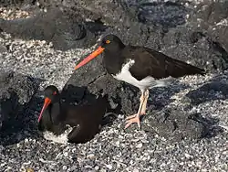 ![]() Ostrero pío de las Galápagos anidando en la isla Fernandina. | ||