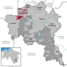Se encuentra ubicado a poca distancia al oeste de la frontera con el estado de Sajonia-Anhalt, y al sur de la ciudad de Salzgitter.