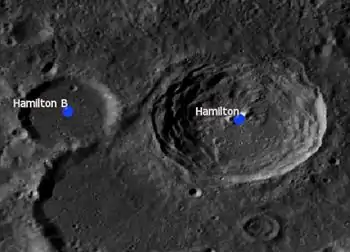 Hamilton es un cráter de impacto que se encuentra cerca de la extremidad sureste de la Luna. Desde la Tierra el cráter aparece en el límite de la zona visible, lo que limita el detalle con el que puede observarse. Su visibilidad queda afectada por la libración.