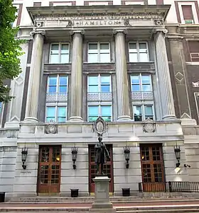 Hamilton Hall es un edificio académico en Manhattan, Nueva York (Estados Unidos). Se encuentra ubicado en el campus de Morningside Heights de la Universidad de Columbia en College Walk (calle 116) en 1130 Ámsterdam Avenue. Fue construido entre 1905 y 1907 y fue diseñado por McKim, Mead & White en estilo neoclásico; el inmueble era parte del plan maestro original de la empresa para el campus. Fue donado por John Stewart Kennedy, un ex fideicomisario de Columbia College,[1] y lleva el nombre de Alexander Hamilton, quien asistió a King's College, el nombre original de Columbia. Una estatua de Hamilton de William Ordway Partridge se encuentra fuera de la entrada del edificio. Hamilton Hall es la ubicación de las oficinas administrativas de Columbia College.[2]