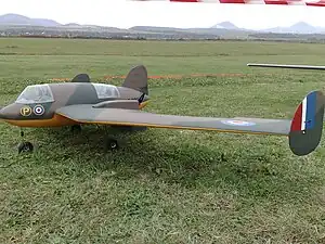 - Planta motriz: 2× motor lineal de 4 cilindros invertidos refrigerado por aire de Havilland Gipsy Major.