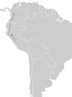 Vive en el bosque húmedo montano y en sus bordes y áreas adyacentes, entre los 700 y 2.400 m de altitud.[5] Está amenazado por pérdida de hábitat.[1]