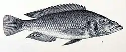 Haplochromis mento es una especie de peces de la familia Cichlidae en el orden de los Perciformes.