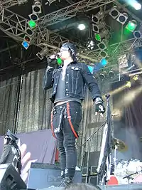 ![]() El cantante de Hardcore Superstar, Jocke Berg, en el festival Summerbreeze en 2007. | ||