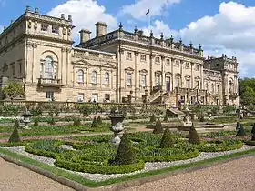 A fines del siglo XVII, los miembros de la familia Lascelles compraron plantaciones en las Indias Occidentales y los ingresos generados permitieron que Henry Lascelles comprara la propiedad en 1738; su hijo, Edwin Lascelles, primer barón Harewood, que era dueño de plantaciones y esclavos, construyó la casa entre 1759 y 1771 para reemplazar a Gawthorpe Hall, la casa señorial original de la finca.