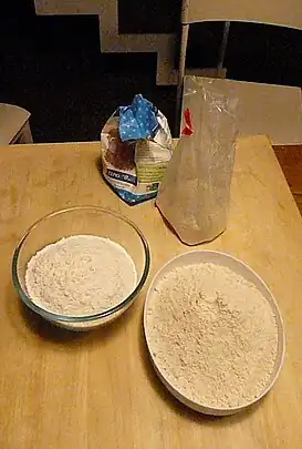 ![]() Harina de castañas (derecha) y harina de trigo (izquierda) para hornear. | ||