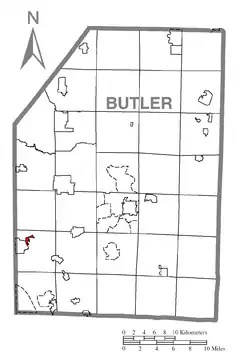 ![]() Ubicación en el condado de Butler ![]() Ubicación del condado en Pensilvania ![]() Ubicación de Pensilvania en EE. UU. | ||