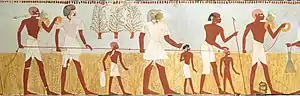 En el antiguo Egipto, un harpedonapta[1] (estirador de cuerda) era un agrimensor dedicado a delimitar parcelas y a replantear cimentaciones, empleando cuerdas con nudos convenientemente estiradas para obtener medidas coherentes. La práctica aparece representada en algunas pinturas que decoran las tumbas de la necrópolis tebana.[2] También utilizaban la plomada y posiblemente triángulos 3-4-5 de 12 nudos (aunque no hay evidencia directa de esto último),[3] procedimientos que se siguen utilizando en la actualidad.