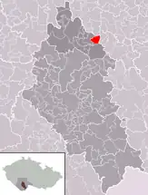 Se encuentra ubicada en el centro-sur de la región, en la zona de la selva de Bohemia, a poca distancia al sur de la ciudad de Praga, de la orilla del río Moldava —el más largo del país, afluente del río Elba— y de la frontera con Austria.[1]