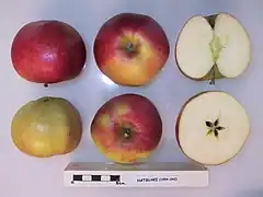 ![]() La variedad de manzana 'Hatsuaki' sinónimo 初明 con secciones cruzadas. | ||