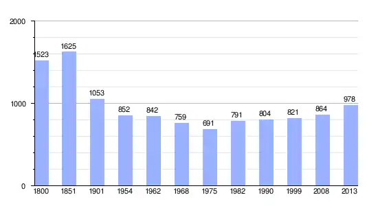 | Gráfica de evolución demográfica de Hauteroche (Jura) entre 1800 y 2013 |