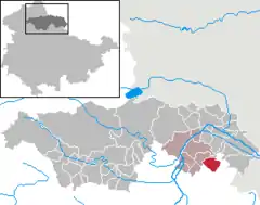 Se ubica en un área separada del término municipal al este de la ciudad, separado del resto de An der Schmücke por el término municipal de Oberheldrungen.[4]