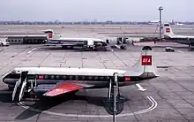 Desde arriba y de izquierda a derecha: Trident 1C de BEA, Trident 2E de Cyprus Airways, Trident 1E de Channel Airways, Trident 3B de British Airways, Trident 1E de Iraqi Airways, Trident 1E de Air Ceylon y Trident 2E de la CAAC. | ||||||||||