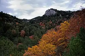 ![]() Vista del Hayedo del Retablo entre el pinar. | ||
