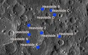![]() Localización de Heaviside. Fotografía de la misión Lunar Reconnaissance Orbiter |