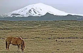 ![]() Un caballo islandés pasta cerca del volcán Hekla en 2006. | ||