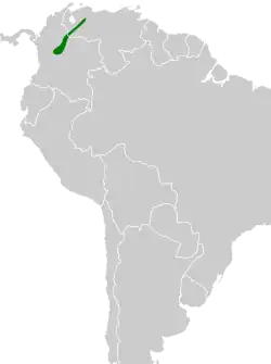 Vive en el borde del bosque húmedo de montaña, pastizales y pendientes con arbustos o árboles dispersos, en elevaciones de la vertiente oriental de los Andes, entre los 2.000 y 3.200 m de altitud.[4]