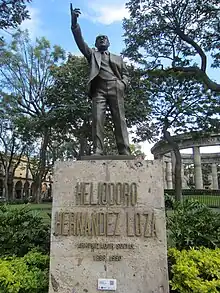 ![]() Estatua de Heliodoro Hernández Loza en el Rotonda de los Jalisciences Ilustres | ||