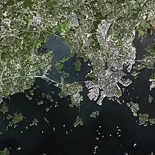 Partes de Helsinki y Espoo vistas desde el satélite SPOT.