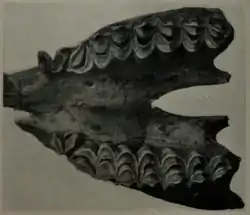 ![]() Maxilar fósil de Hemiauchenia cf. paradoxa. | ||